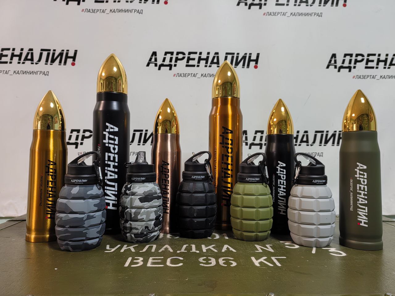 Термосы 0.5 л и 1 л и пять видов гранат-бутылок для воды 0.58 лс фирменным лого